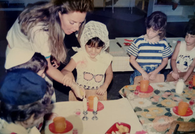 I went to Alon Ashel nursery school and the highlight of my week was being chosen to be the "Ima" (mother in Hebrew) at our Shabbat service where I would say the blessings over the candles to welcome in the Sabbath and we would eat Challah bread and drink grape juice (an age-appropriate substitute for wine).